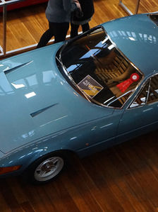 The Ferrari Daytona, also known as the Ferrari 365 GTB/4 for the Berlinetta and 365 GTS/4 for the Spyder, was a two-seat grand tour manufactured by Ferrari from 1968 to 1973. It was unveiled at the Paris Auto Salon in 1968 as a replacement for the GTB/4 and was powered by the 275's Colombo V12 engine bored out to 4,390 cc (4.4 L; 267.9 cu in). The Daytona was succeeded by the mid-engined 365 GT4 Berlinetta Boxer in 1973.